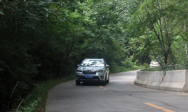 弯曲不平的山路对于森林人来说太小意思了,行驶非常平稳,给人一种很扎实,很沉稳的感觉,这大概主要归功于斯巴鲁SPG平台,提升了刚度又增加了舒适性,悬架与车身融为一体,带来良好的支撑性,面对复杂路况也不会“跑偏”。