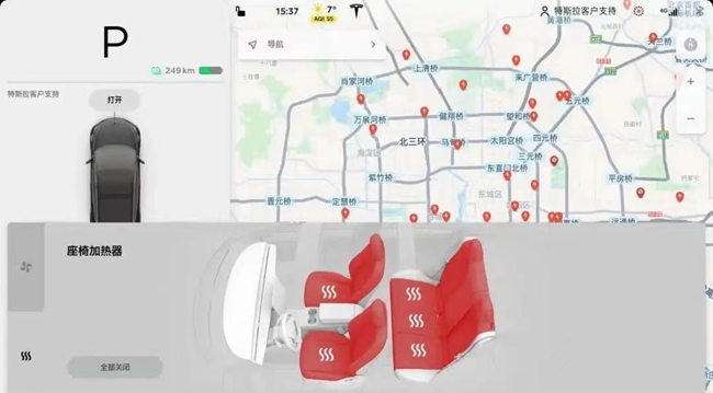 隗先生家中还有一辆豪华品牌的传统燃油车,但自从购入第一辆特斯拉电动车Model S后,家人便都抢着开,再开燃油车已经“回不去了”,于是隗先生又先后购入了Model3和中国制造Model Y。平时,家有三只比熊犬的隗先生会带着它们一同出门,将后座放倒给狗狗更舒适的空间,若遇到不方便宠物进入的场所,他便开启爱犬模式把狗狗留着车内,恒温通风的车厢、大屏上的温度提示让他非常安心。