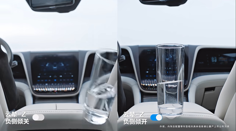 在此基础之上,仰望U7首发搭载车身垂向控制的革命性技术云辇-Z,以快至5毫秒的响应速度对车辆进行快速精准控制,是传统主动悬架的数十倍。从仰望近期发布的一系列测试视频可以看出,在云辇-Z加持之下,仰望U7无论面对坑洼路面、随机减速带还是颠簸路,都能够展现出磁悬浮般的平稳,做到如履平地、从容稳行。而在急加速、急刹车、高速绕桩等场景中,仰望U7更以极强的控制能力抑制了车身的俯仰和侧倾,甚至在定圆行驶过程中实现负侧倾,让车内的水杯不随着离心作用翻洒,大幅提升驾乘的舒适性。