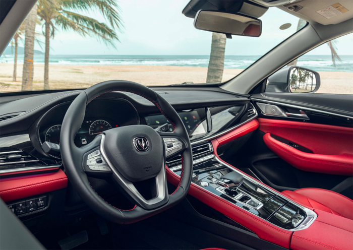 外观方面,其采用了长安最新的蝶翼式家族前脸设计,搭配在这款中型SUV上还是会给人较强的视觉冲击力。细节方面,其前进气格栅融入了较为复杂的设计元素,搭配两侧锐利的大灯造型,使该车前脸看上去十分时尚。同时,其前脸下方略带铲型的前包围设计,也在一定程度上增加了该车运动感。尾部方面,一条镀铬饰条将左右两侧尾灯组相连接,从而进一步拉宽了车尾的视觉效果。值得一提的是,该车采用了双边共四出的排气布局,视觉效果突出。车身尺寸方面,其长宽高分别为4720/1845/1665mm,轴距2705mm。