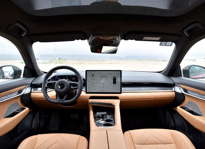内饰方面,新车中控台采用了非常简洁的设计,中控台上配备了15.4英寸的多媒体触摸屏,配合尺寸小巧的液晶仪表,能够营造出不错的科技氛围。此外,新车配备了一款三辐式多功能方向盘,在诸多亮黑色饰板的加持下,车内的精致感将会得到一定的提升。