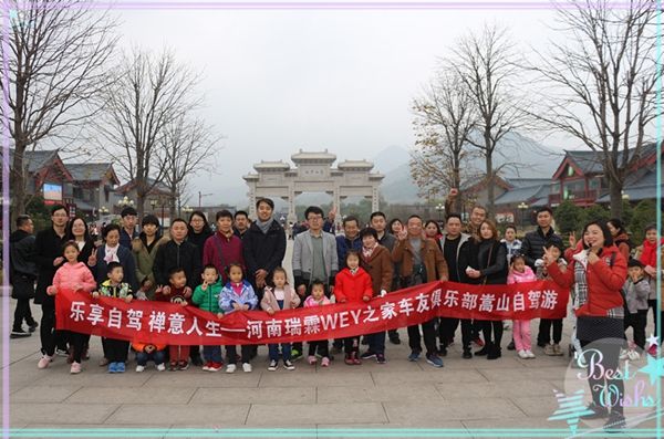 车友们都到齐了,来张大合影,由服务总监陶静发言,宣布此次少林寺自驾游正式开启。准备出发!