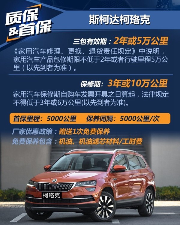 可以看出柯珞克后期成本并不像它的售价那样亲民,以3年行驶6万公里左右来估算需要9967元(仅使用原厂矿物油的情况下)的保养费用,但好在当后期成本均摊至每月或是每公里的平均成本之后,还可以为大多数消费者所接受,而导致整体保养成本稍稍偏高主要还是因为4S店要求的车辆保养里程数较短(每5千公里保养一次)。