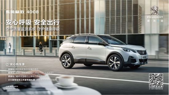 作为一台高端智能SUV,4008总是先人一步,以更优越的配置在各个方面展现出更卓越的品质。在与新冠病毒对抗的特殊时期,“呼吸”重新成为最受关注的话题,拥有出色的车内空气质量监测系统成为重中之重。4008车内的空气过滤系统配备高效活性炭过滤滤芯,对直径1微米的颗粒净化率达95%以上,具有过滤PM2.5颗粒的能力。关闭车窗车门、开启空调的高效过滤器时,PM2.5的浓度从1000到35,仅需8分35秒。安心呼吸,安全出行,4008在尝先路上为驾乘者保驾护航。