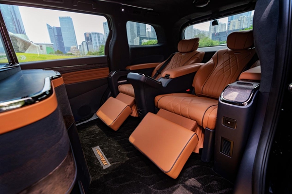 在空间方面,二排超豪华头等舱座椅坐宽达500mm+,两侧扶手呈仿臂型弧面,同时配备头枕高度、靠背、腿托和前后10向电动调节,入座贵宾能调节至最舒适坐姿。车内还拥有与劳斯莱斯幻影同款星空顶、多彩色玻璃天幕设计,选择四座版独有的“一键躺平”功能,人在车中即能轻松仰望漫天繁星,为出行增添浪漫情调。