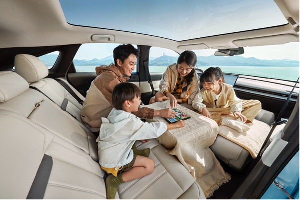 启辰VX6开创性的从用车场景进行空间布局,让车内空间不仅“大”而且百变。搭载自研的“魔方座椅”技术,启辰VX6可实现同级独有的前排座椅180°前后电动调节,结合后排座椅可下沉设计,可轻松放平前后排座椅,打造100%全平空间。