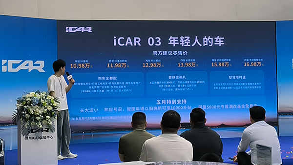 5月18日,“百店齐开iCAR登场”iCAR Space百店开业暨iCAR 03新车上市郑州站圆满成功。众多车主、准车主及媒体嘉宾共聚一堂,共同见证这一重要时刻。作为iCAR与用户共同的“家”,裕华星光iCAR Space的开业标志着iCAR和用户之间坚实链接的开启。围绕用户选车、购车、出行、补能等用车全场景,通过模式创新,构建了全链路数字化的触点体验体系,实现了极致效率,为用户提供极致体验,成为年轻人的潮流中心,打造城市新网红地标。
